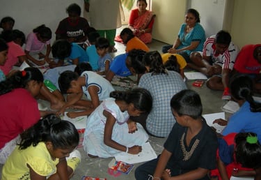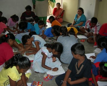 Facilitating children's learning of musical instruments such as Mridanga, Karatala, Harmonium by expert teachers.